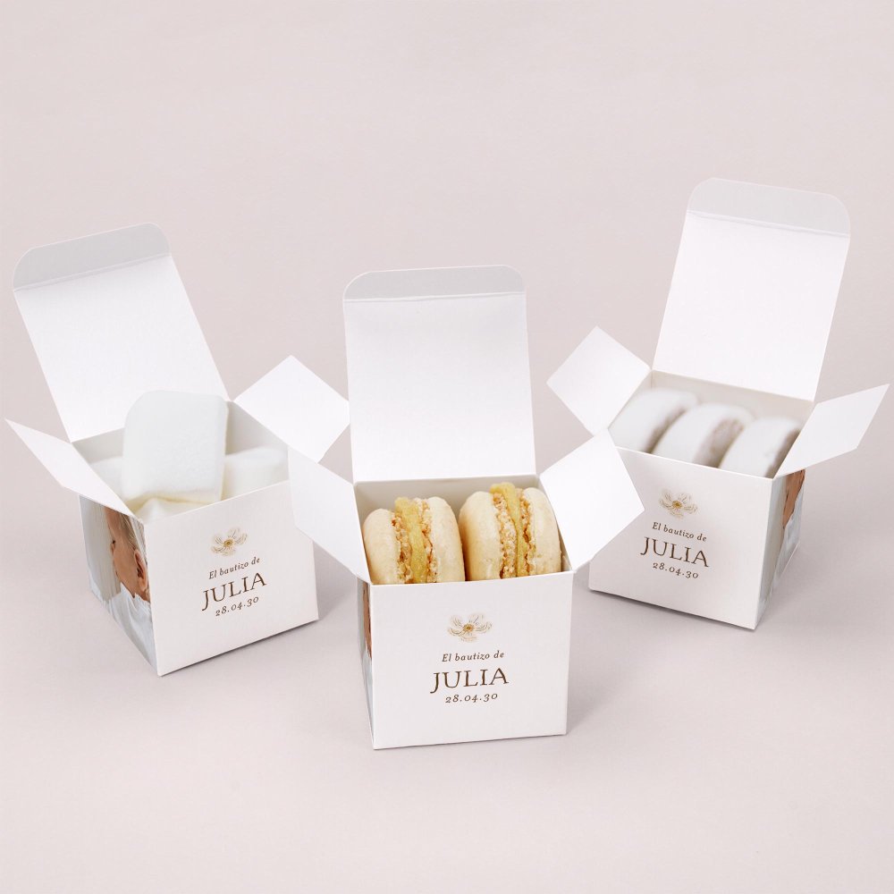 Caja sorpresa para rellenar con lo que quieras y entregar un bonito detalle a tus invitados como recuerdo del bautizo de vuestro peque.