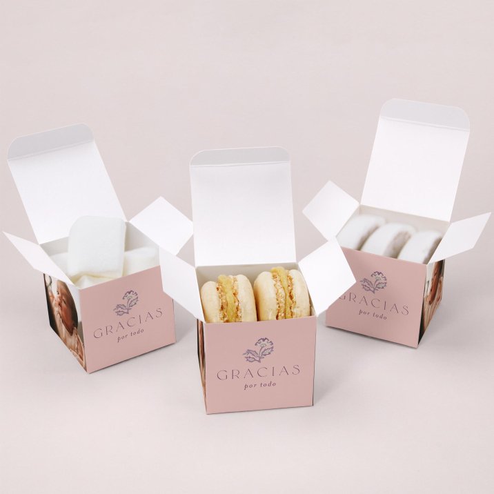 Tampoco vienen con el contenido. Como sugerencia podéis rellenarlas con nuestras peladillas elaboradas artesanalmente en el sur de Francia (propuestas como accesorio por separado). Os aconsejamos llenarlas con 20 peladillas por caja (50 g).