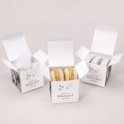 Tampoco vienen con el contenido. Como sugerencia podéis rellenarlas con nuestras peladillas elaboradas artesanalmente en el sur de Francia (propuestas como accesorio por separado). Os aconsejamos llenarlas con 20 peladillas por caja (50 g).