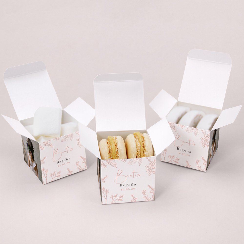 Tampoco vienen con el contenido. Como sugerencia podéis rellenarlas con nuestras peladillas elaboradas artesanalmente en el sur de Francia (propuestas como accesorio por separado). Os aconsejamos llenarlas con 20 peladillas por caja (50 g).