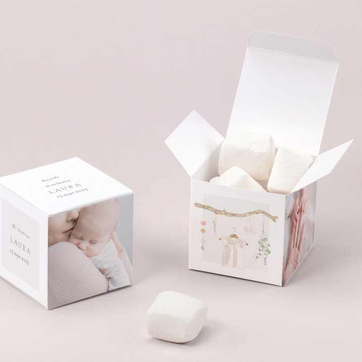 Caja sorpresa para rellenar con lo que quieras y entregar un bonito detalle a tus invitados como recuerdo del bautizo de vuestro peque.