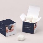 Tampoco vienen con el contenido. Como sugerencia podéis rellenarlas con nuestras peladillas elaboradas artesanalmente en el sur de Francia (propuestas como accesorio por separado). Os aconsejamos llenarlas con 20 peladillas por caja (50 g).