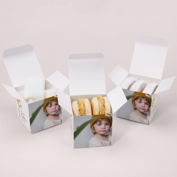 Tampoco vienen con el contenido. Como sugerencia podéis rellenarlas con nuestras peladillas elaboradas artesanalmente en el sur de Francia (propuestas como accesorio por separado). Os aconsejamos llenarlas con 20 peladillas por caja (50 g).