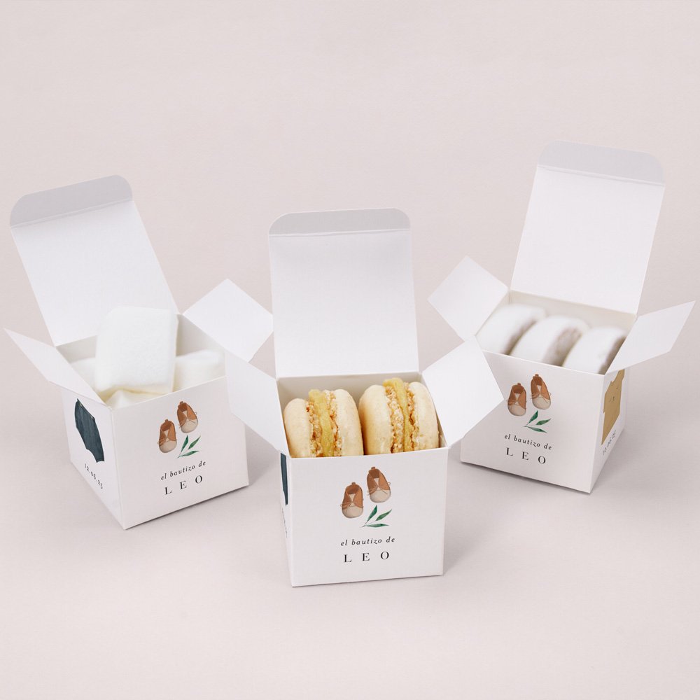Tampoco vienen con el contenido. Como sugerencia podéis rellenarlas con nuestras peladillas elaboradas artesanalmente en el sur de Francia (propuestas como accesorio por separado). Os aconsejamos llenarlas con 20 peladillas por caja (50 g).