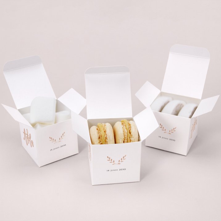 Tampoco vienen con el contenido. Como sugerencia podéis rellenarlas con nuestras peladillas elaboradas artesanalmente en el sur de Francia (propuestas como accesorio por separado). Os aconsejamos llenarlas con 20 peladillas por caja (50 g).