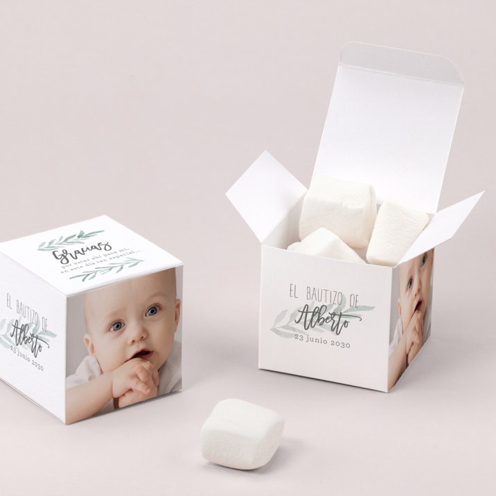 Caja sorpresa para rellenar con lo que quieras y entregar un bonito detalle a tus invitados como recuerdo del bautizo de vuestro peque.