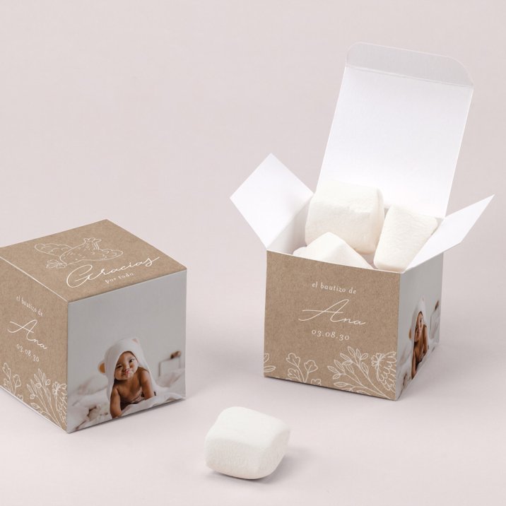 Caja sorpresa para rellenar con lo que quieras y entregar un bonito detalle a tus invitados como recuerdo del bautizo de vuestro peque.