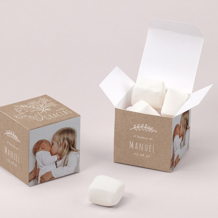 Caja sorpresa para rellenar con lo que quieras y entregar un bonito detalle a tus invitados como recuerdo del bautizo de vuestro peque.