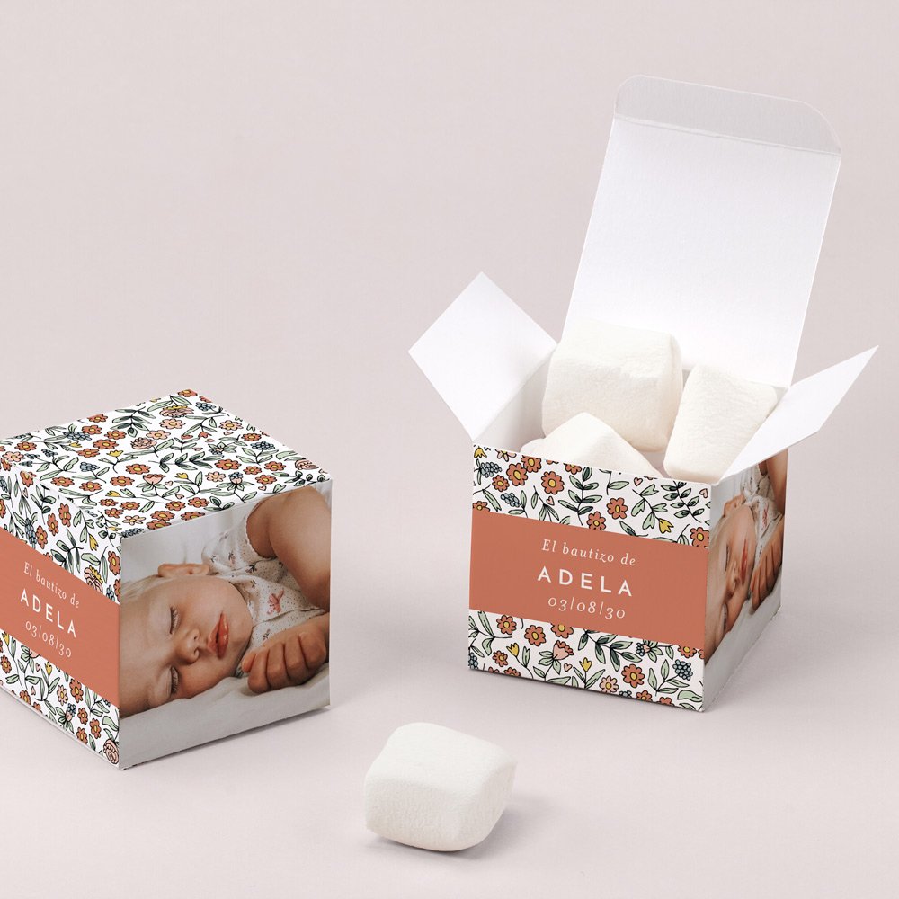 Tampoco vienen con el contenido. Como sugerencia podéis rellenarlas con nuestras peladillas elaboradas artesanalmente en el sur de Francia (propuestas como accesorio por separado). Os aconsejamos llenarlas con 20 peladillas por caja (50 g).