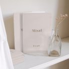 Cubierta de libro de misa en cartulina a juego con tu invitación: Se puede decorar con un lazo (se compra por separado, varios colores disponibles). Las hojas interiores no se suministran (sugerencia: Imprime las hojas interiores en papel A4, dóblalas y átalas con el lazo).