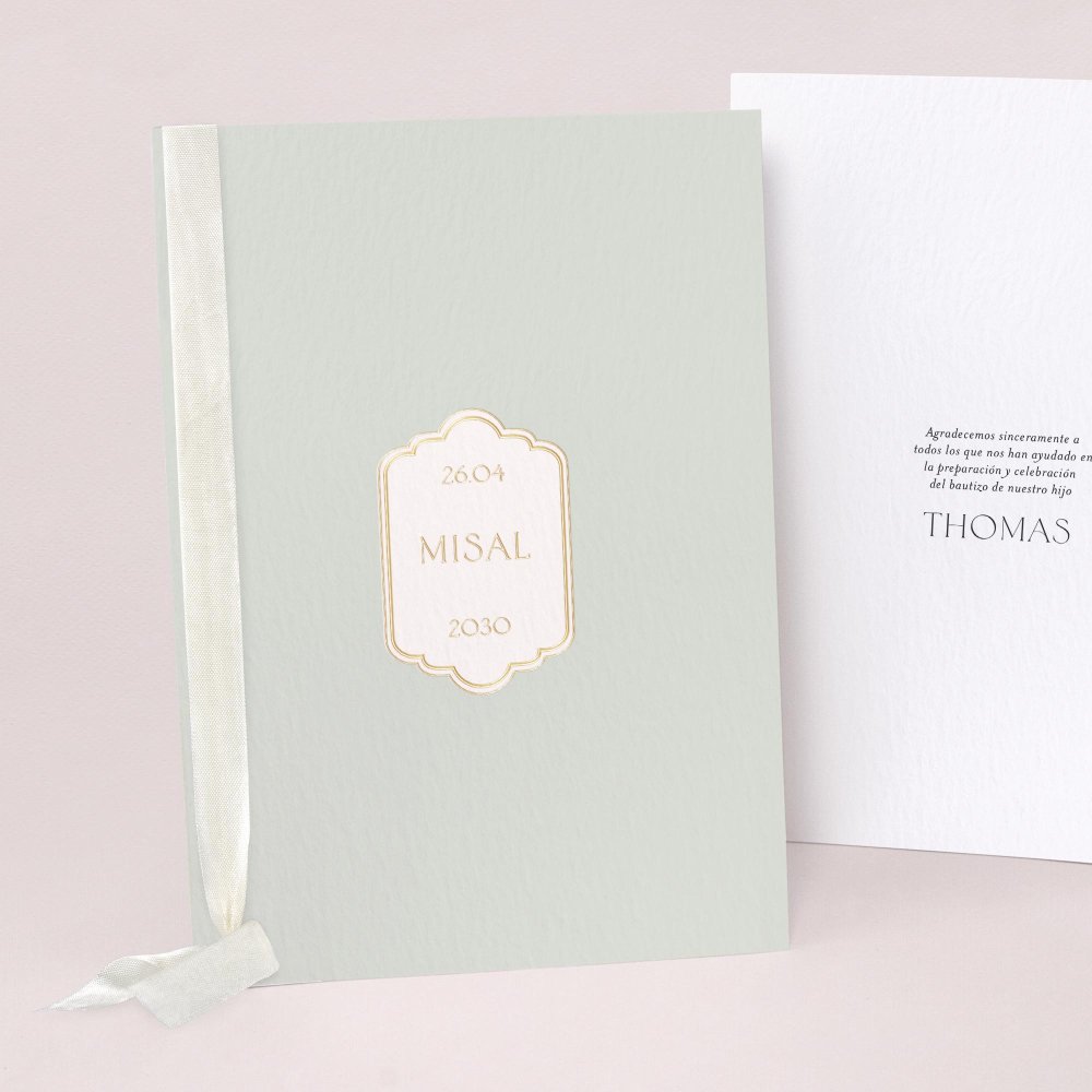Cubierta de libro de misa en cartulina a juego con tu invitación: Se puede decorar con un lazo (se compra por separado, varios colores disponibles). Las hojas interiores no se suministran (sugerencia: Imprime las hojas interiores en papel A4, dóblalas y átalas con el lazo).