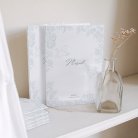Cubierta de libro de misa en cartulina a juego con tu invitación: Se puede decorar con un lazo (se compra por separado, varios colores disponibles). Las hojas interiores no se suministran (sugerencia: Imprime las hojas interiores en papel A4, dóblalas y átalas con el lazo).