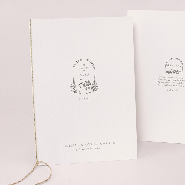 Cubierta de libro de misa en cartulina a juego con tu invitación: Se puede decorar con un lazo (se compra por separado, varios colores disponibles). Las hojas interiores no se suministran (sugerencia: Imprime las hojas interiores en papel A4, dóblalas y átalas con el lazo).