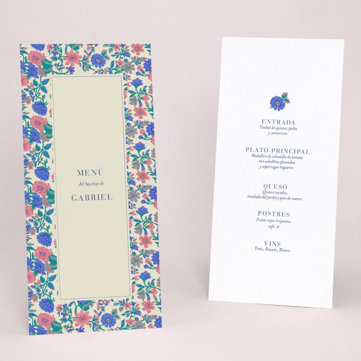 ¿Ya tienes el menú confirmado? Puedes personalizarlo a conjunto con el diseño de la invitación. Un detalla para añadir a la decoración de la mesa que encantará a tus invitados.