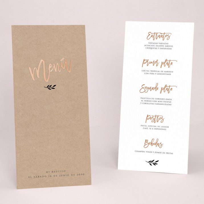 ¿Ya tienes el menú confirmado? Puedes personalizarlo a conjunto con el diseño de la invitación. Un detalla para añadir a la decoración de la mesa que encantará a tus invitados.