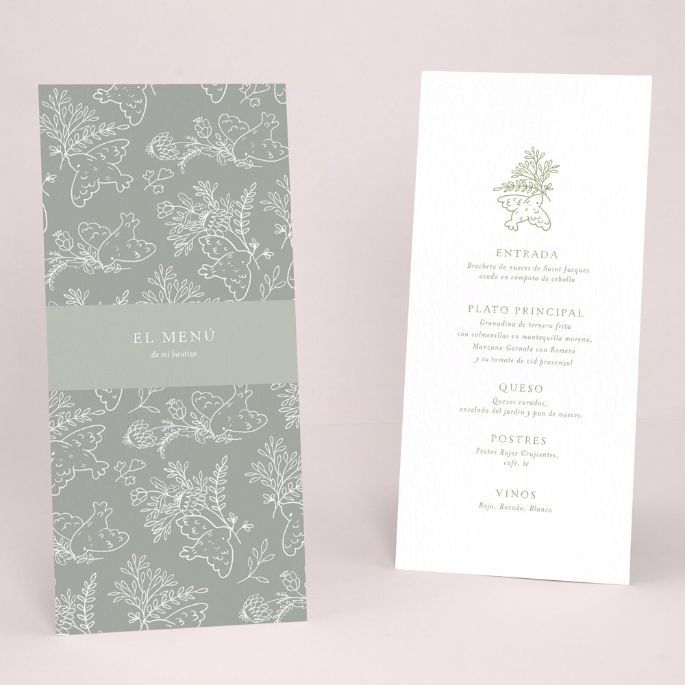 ¿Ya tienes el menú confirmado? Puedes personalizarlo a conjunto con el diseño de la invitación. Un detalla para añadir a la decoración de la mesa que encantará a tus invitados.