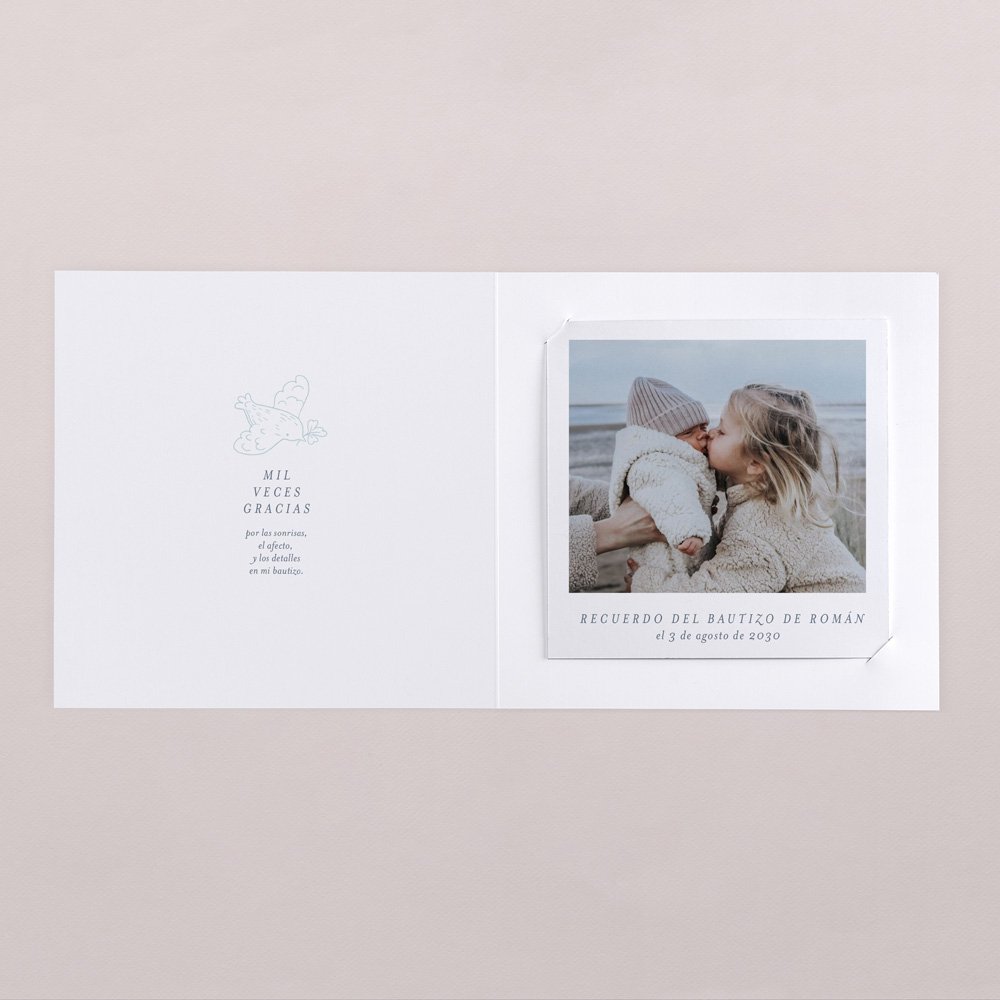La polaroid la podréis colocar en el interior del díptico de la tarjeta. Tus familiares y amigos la podrán enmarcar, conservar, usar como decoración en un rincón de su casa... para recordar ese día tan bonito y entrañable.