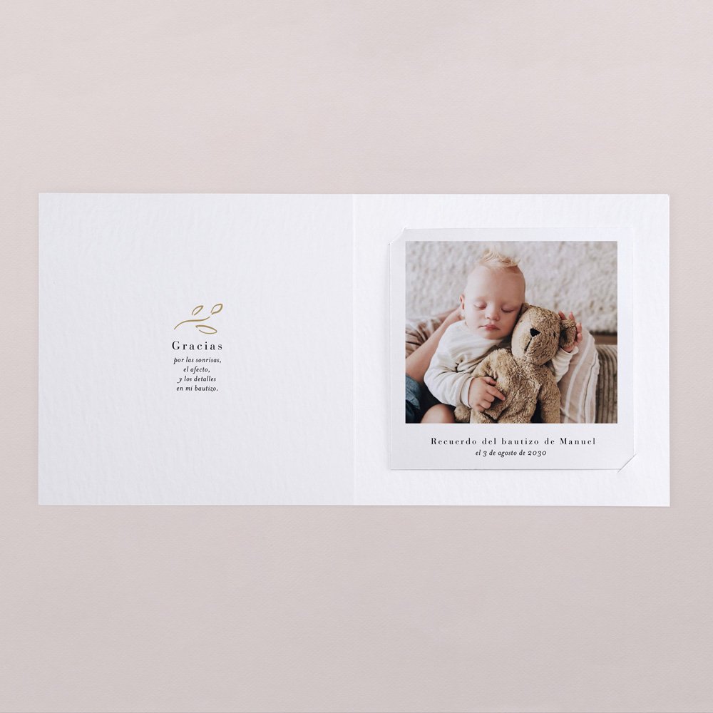 La polaroid la podréis colocar en el interior del díptico de la tarjeta. Tus familiares y amigos la podrán enmarcar, conservar, usar como decoración en un rincón de su casa... para recordar ese día tan bonito y entrañable.