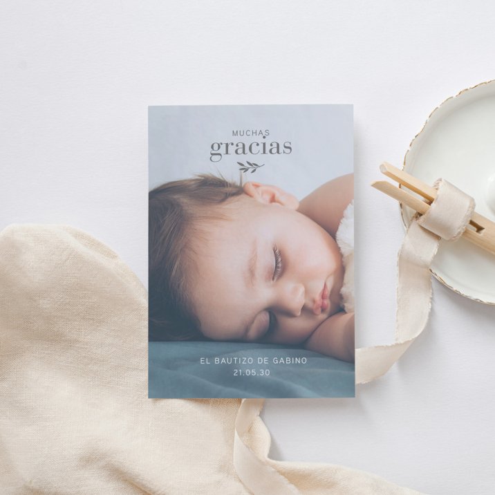 Agradece a tus seres queridos que rodearon a tu hijo en su bautizo con una bonita tarjeta de agradecimiento a juego con la invitación de este gran día.