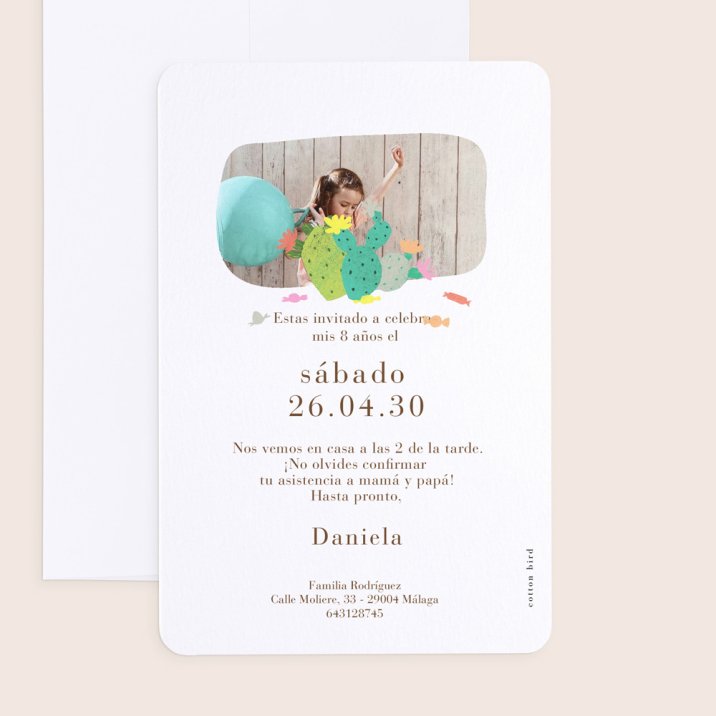 La tarjeta de invitación Amigo se inspira en las tradicionales fiestas llenas de colorido de América Latina y promete a quienes asistan a la fiesta un cumpleaños con grandes sorpresas y mucha diversión.