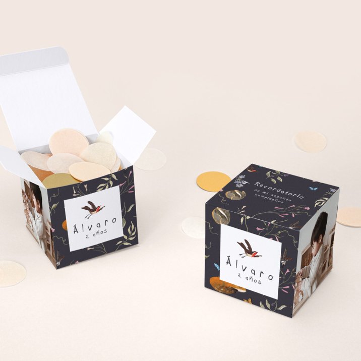 Asegúrate de que los invitados se marchen con un bello recuerdo del cumpleaños que han celebrado regalándoles un pequeño cubo sorpresa En el bosque.