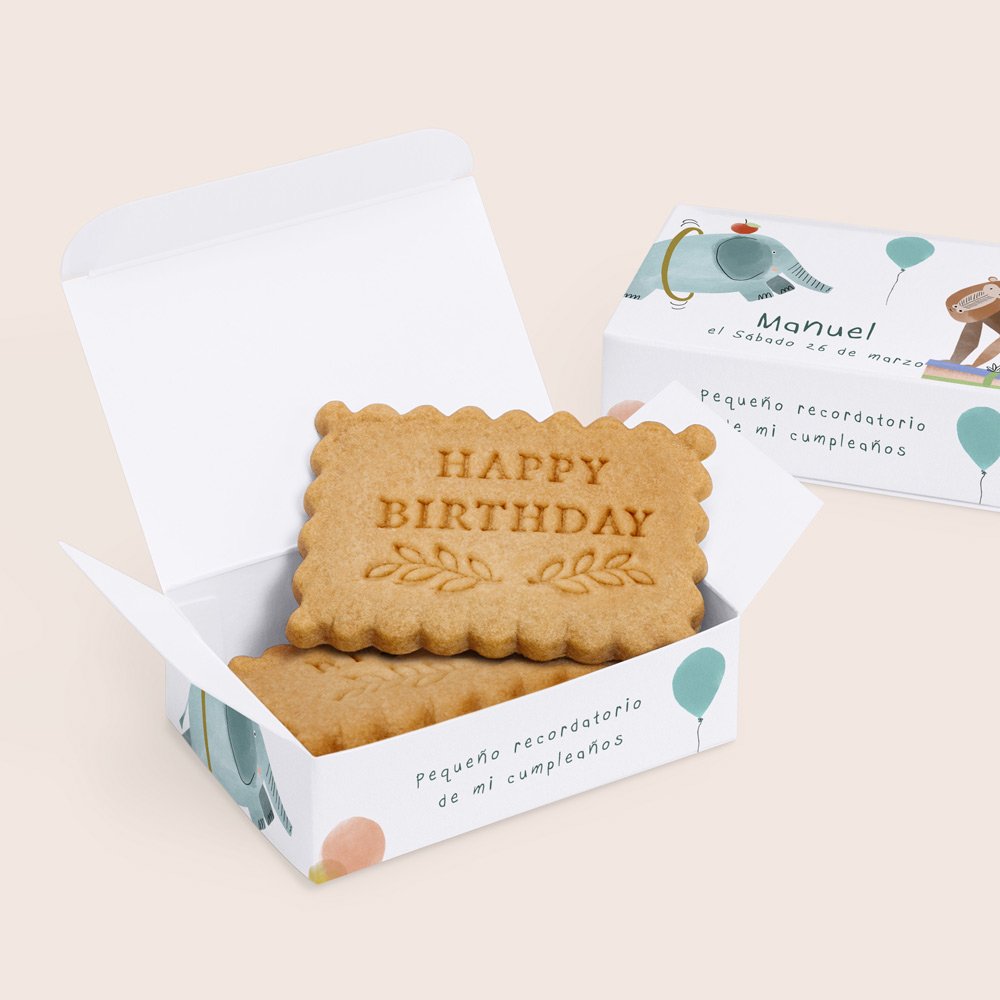 ¿Tu hijo ha soplado las velas entre mimos y rodeado de amor? Agradece a todas las personas que han contribuido a que su cumpleaños sea memorable con una caja Jungle friends rellena de deliciosas galletas de mantequilla.