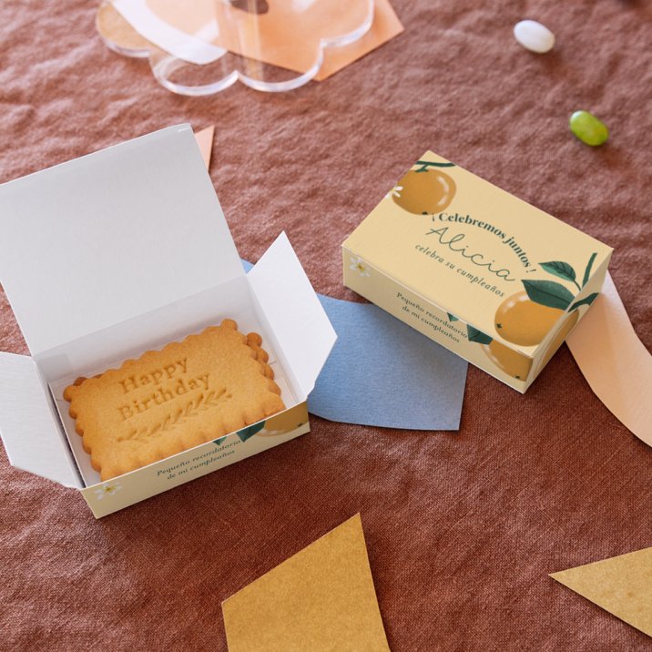 ¿Tu hijo ha soplado las velas entre mimos y rodeado de amor? Agradece a todas las personas que han contribuido a que su cumpleaños sea memorable con una caja Mermelada de naranja rellena de deliciosas galletas de mantequilla.
