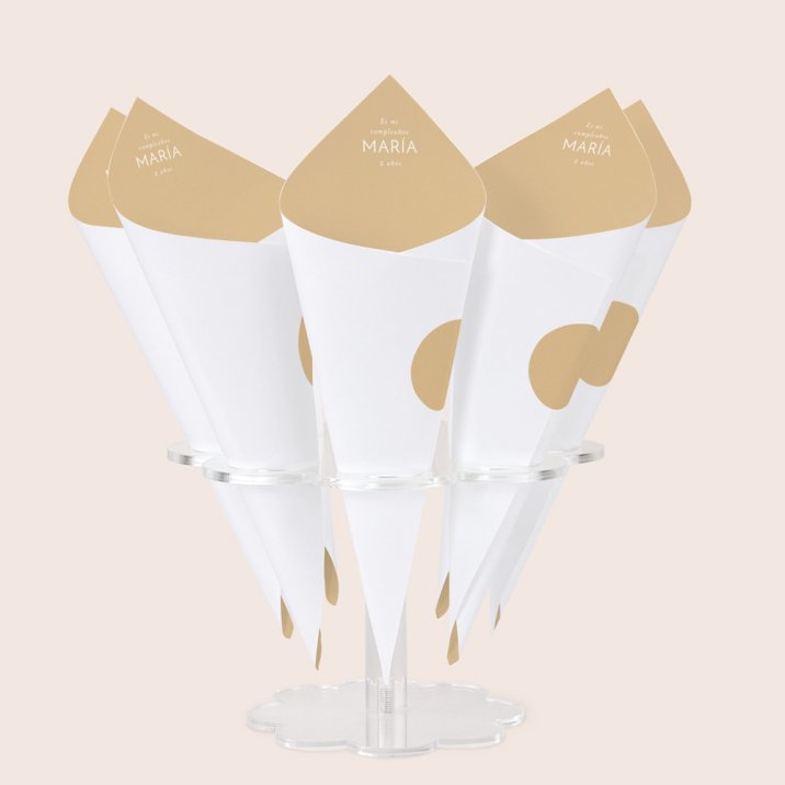 Serpentinas, matasuegras y cotillones para un ambiente alegre, muchos lápices de colores para un taller creativo, golosinas (palomitas, nubes de gominola, etc.), detallitos... ¡un sinfín de posibilidades para rellenar tus conos con regalos que harán las delicias de tus invitados!