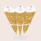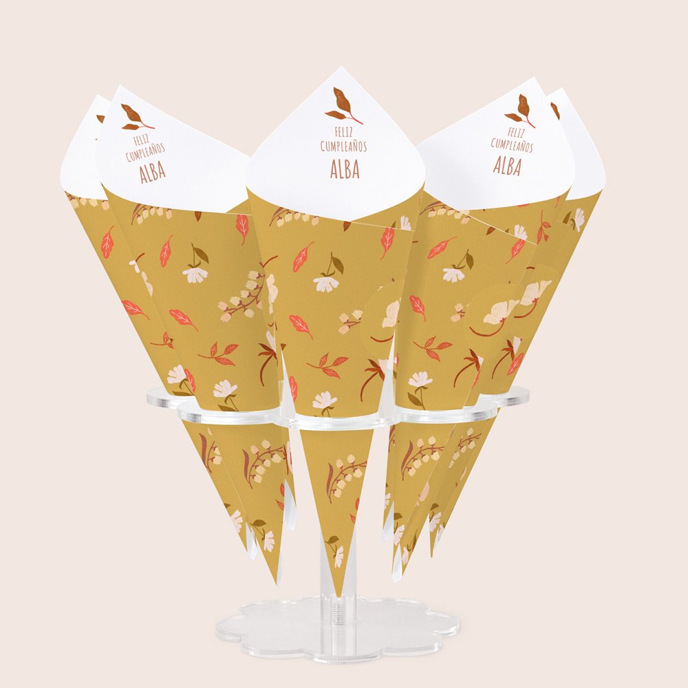 Serpentinas, matasuegras y cotillones para un ambiente alegre, muchos lápices de colores para un taller creativo, golosinas (palomitas, nubes de gominola, etc.), detallitos... ¡un sinfín de posibilidades para rellenar tus conos con regalos que harán las delicias de tus invitados!