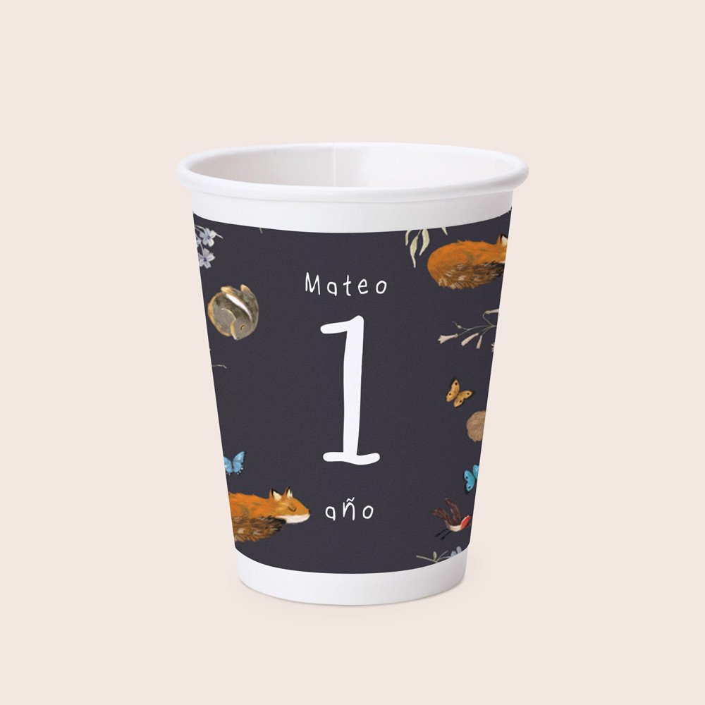 Estos vasos de fibra reciclable incluyen etiquetas autoadhesivas personalizables con el nombre de tu hijo, su edad y la fecha del evento.