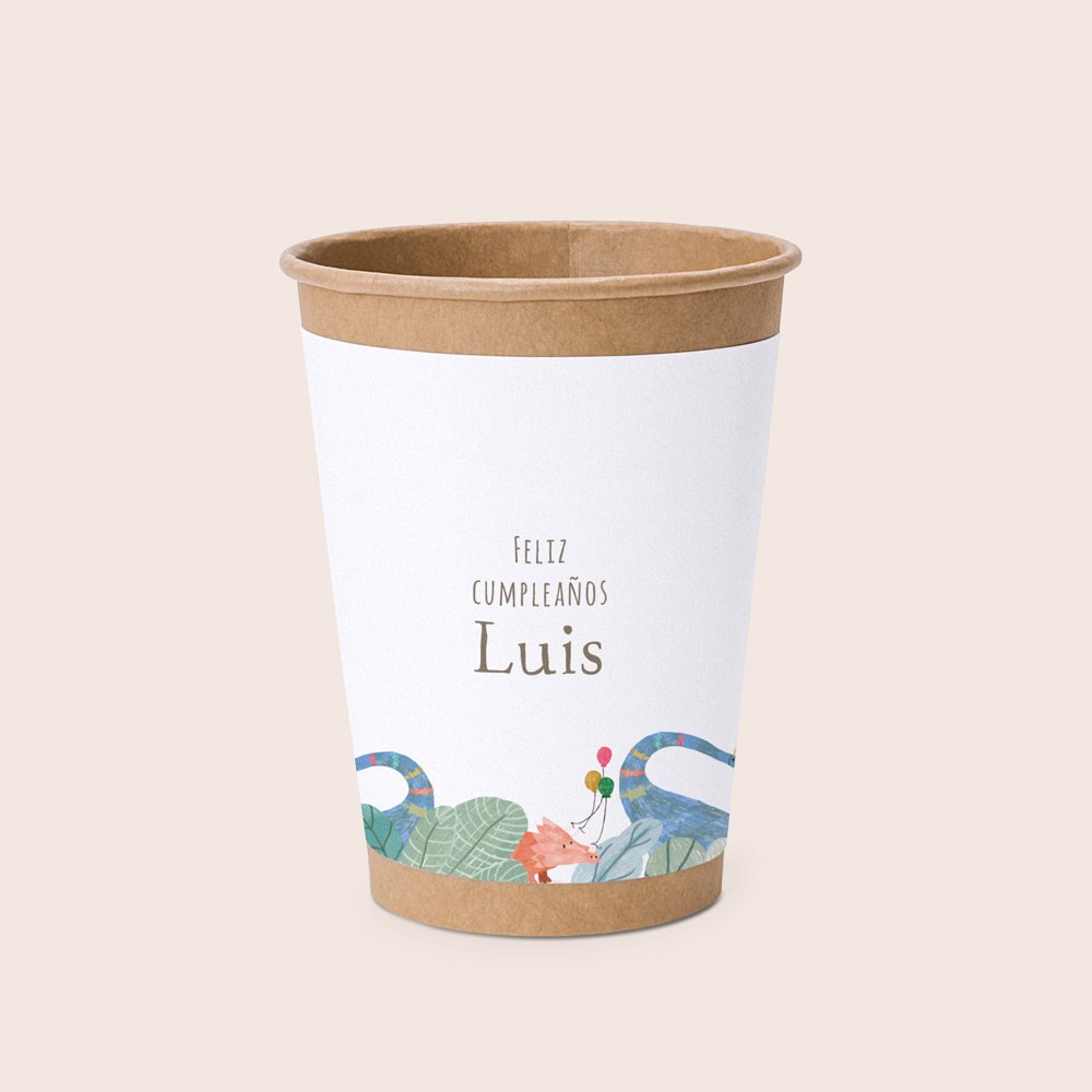 Estos vasos de fibra reciclable incluyen etiquetas autoadhesivas personalizables con el nombre de tu hijo, su edad y la fecha del evento.