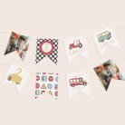 Esta guirnalda de 16 banderines de doble cara, a juego con la invitación elegida, se puede personalizar con el nombre de tu hijo, la fecha de su cumpleaños, su foto y un breve mensaje de celebración.