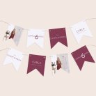 Esta guirnalda de 16 banderines de doble cara, a juego con la invitación elegida, se puede personalizar con el nombre de tu hijo, la fecha de su cumpleaños, su foto y un breve mensaje de celebración.