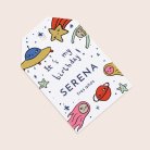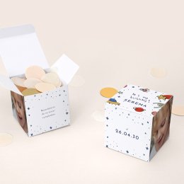 Esta etiqueta, a juego con la invitación de tu hijo, aportará una nota festiva a todas tus ideas de regalo como recuerdo del evento.