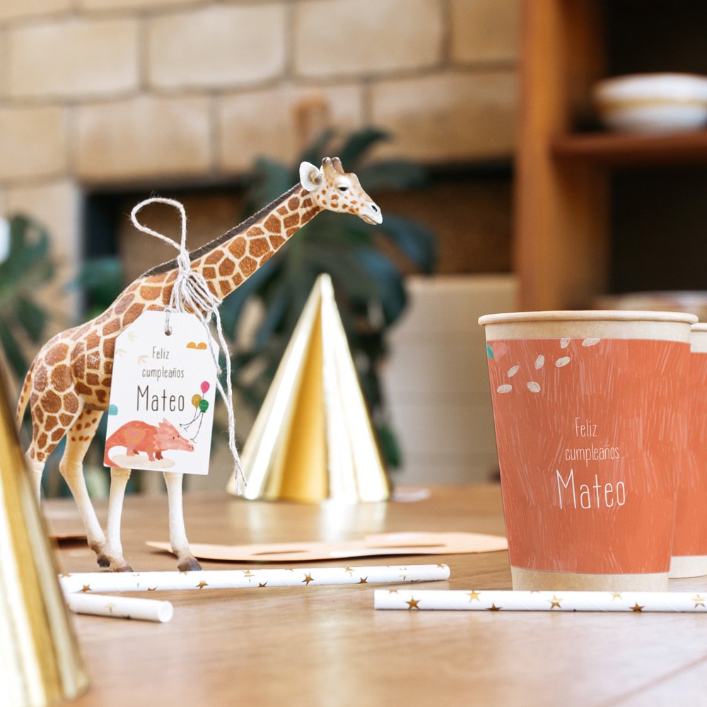 Esta etiqueta, a juego con la invitación de tu hijo, aportará una nota festiva a todas tus ideas de regalo como recuerdo del evento.