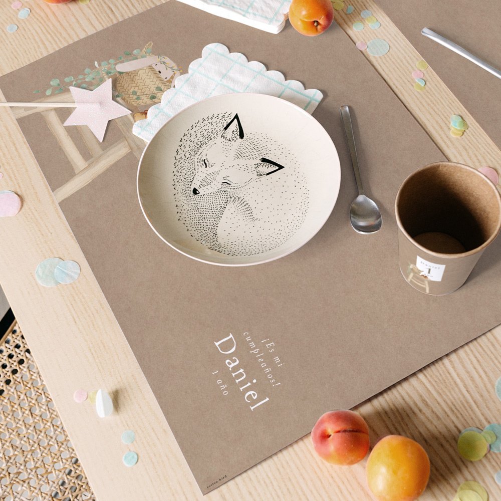 Alegra la mesa de la fiesta de cumpleaños de tu hijo con los bonitos manteles individuales a juego con tu invitación.