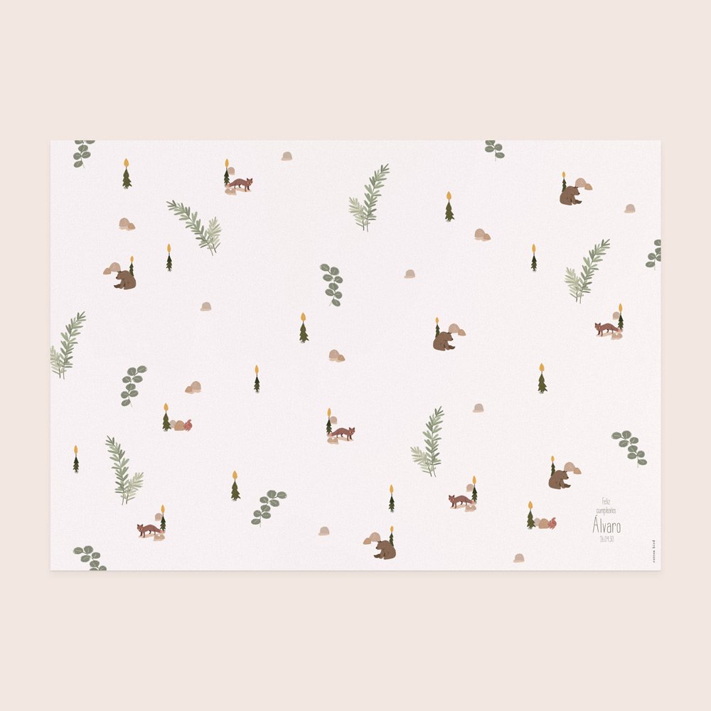 Alegra la mesa de la fiesta de cumpleaños de tu hijo con los bonitos manteles individuales Bizcocho a juego con tu invitación.