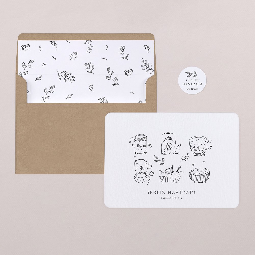 Para evocar momentos compartidos en torno a una taza de té en Navidad, la felicitación Tea Time y sus ilustraciones a lápiz invitan a celebrar las fiestas navideñas de forma entrañable.