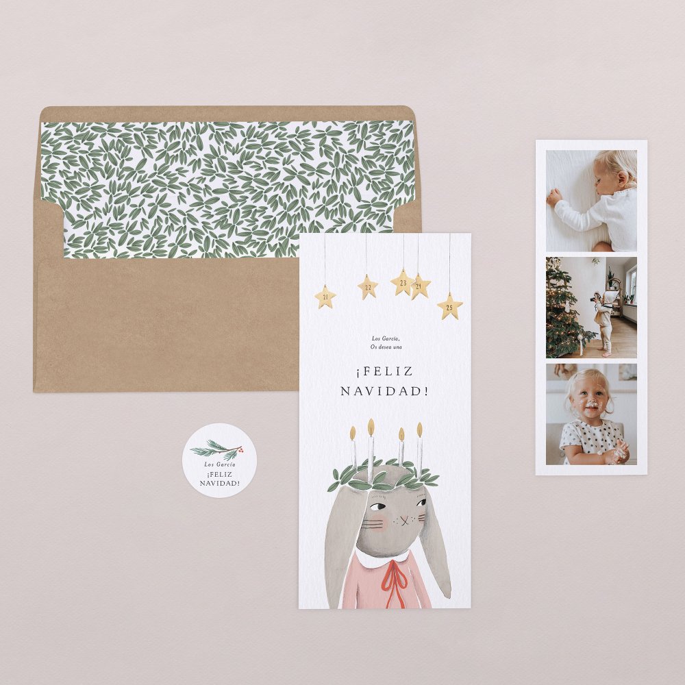 Al abrirla, tus seres queridos descubrirán tu mensaje de Navidad personalizado, así como un bonito fotomatón con tres recuerdos de tu elección.