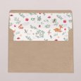 Zorros, ardillas y pájaros están ilustrados en la tarjeta de felicitación Winter forest. Un diseño con aire de bosque encantado, para transmitir con ternura sus deseos de Navidad y Año Nuevo.