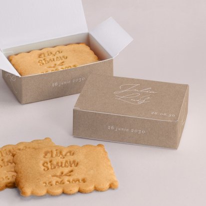 Agradece a cada uno de tus invitados con este bonito regalo. Podrás incluir 3/4 galletas (no incluidas), dentro de la caja personalizada a conjunto con el recordatorio... Un regalo que gustará a todos.