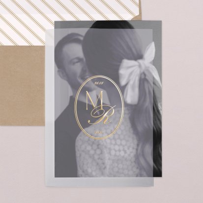El papel vegetal se emplea en el diseño de portadas de invitaciones de boda increíbles. Su transparencia es ideal para crear un envoltorio o cubierta original al doblarlo en díptico e imprimir detalles sobre la superficie. Ya sean las iniciales entrelazadas de la feliz pareja o los nombres, tal y como como verás en los modelos Hermes o Nerea; o el trazado sencillo de un arreglo floral, como ocurre en los modelos de invitación Aroma o Pilea.