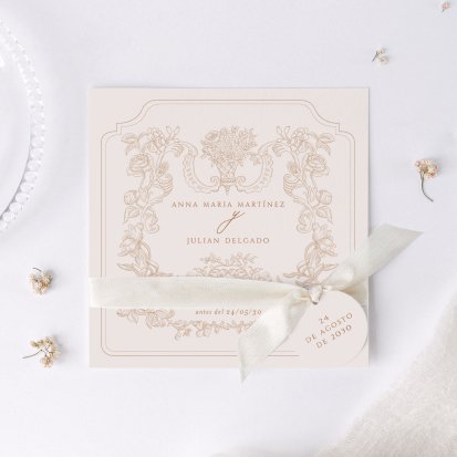 Por su parte, las tarjetas con un diseño vintage ofrecen un acabado mucho más bohemio y elegante. Estas suelen ser recomendadas cuando se busca dar al evento un barniz del pasado. Asimismo, son la mejor opción cuando lo que se busca es poner énfasis en los detalles del acontecimiento y no en los novios.